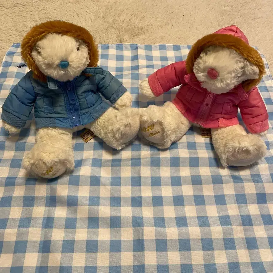 후드 부착 자켓 봉제 인형 2체 세트 페어 베어