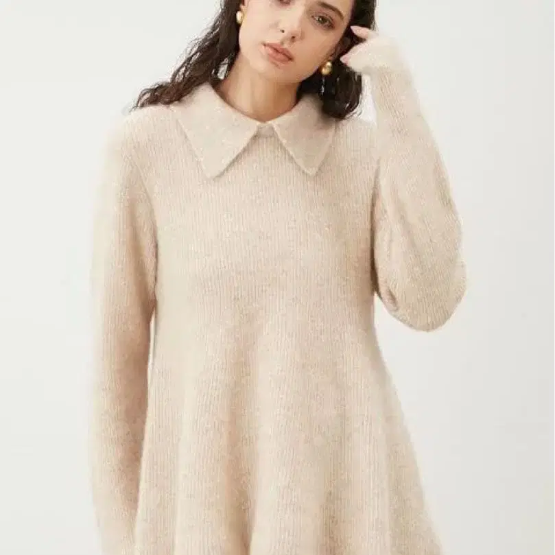 Mila Owen 카라 달린 페플럼 니트 풀오버