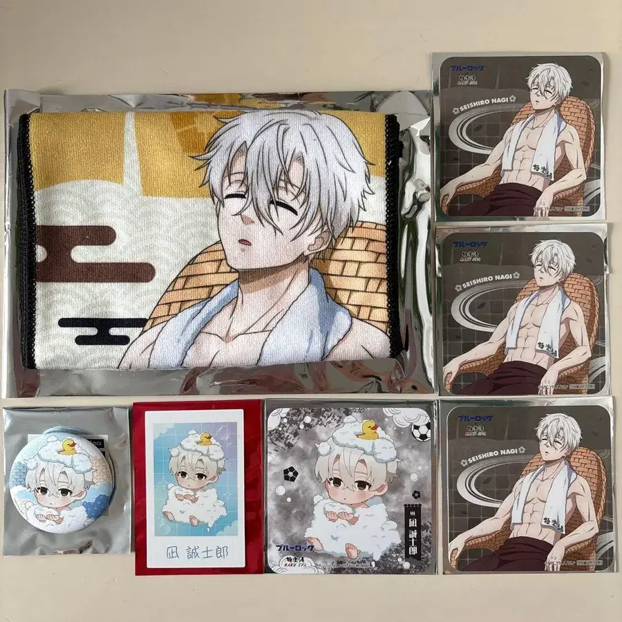 블루 록 나기 세이시로 7점 극락탕 에고이스트 세트 머플러 타월 화지풍 캔뱃지 목욕탕 ver. 미니 캐릭터 정가 550엔 폴라 샷 목욕탕 ver. 미니 캐릭터 정가 330엔 콜라보 메뉴 코스터 등신 3점 콜라보 메뉴 코스터 미니 캐릭터 내용물 확인을 위해 개봉 완료 미사용 즉시 구매 가능 세트 판매만 가능 낱개 판매 불가