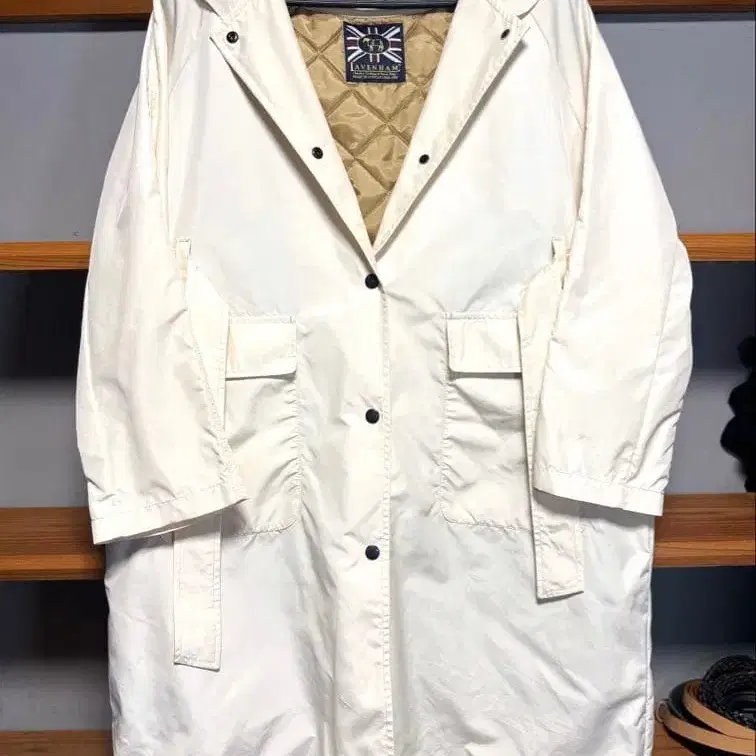 새상품급 라벤햄 스프링 코트 라이너 벨트 포함 아이보리 36