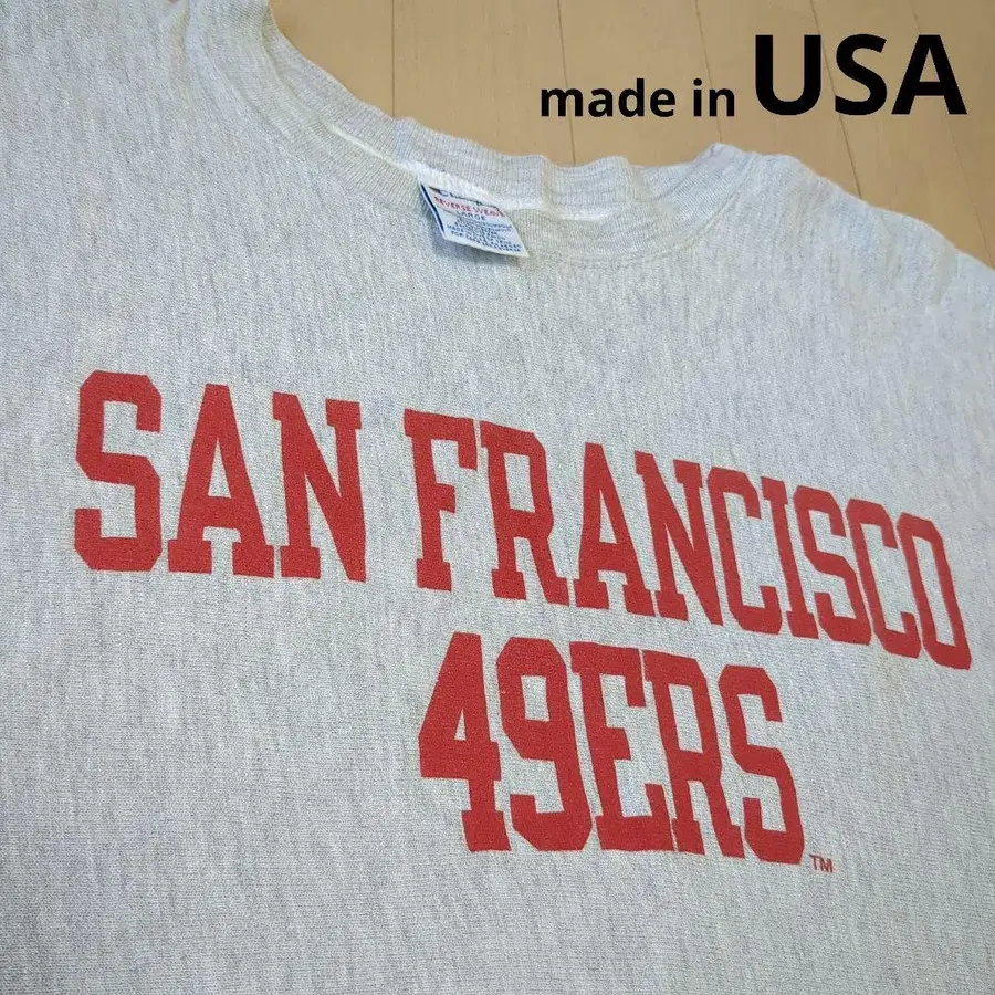 그레이 색상의 크루넥 트레이닝복, SAN FRANCISCO 49ERS 프린트 로고 포함.