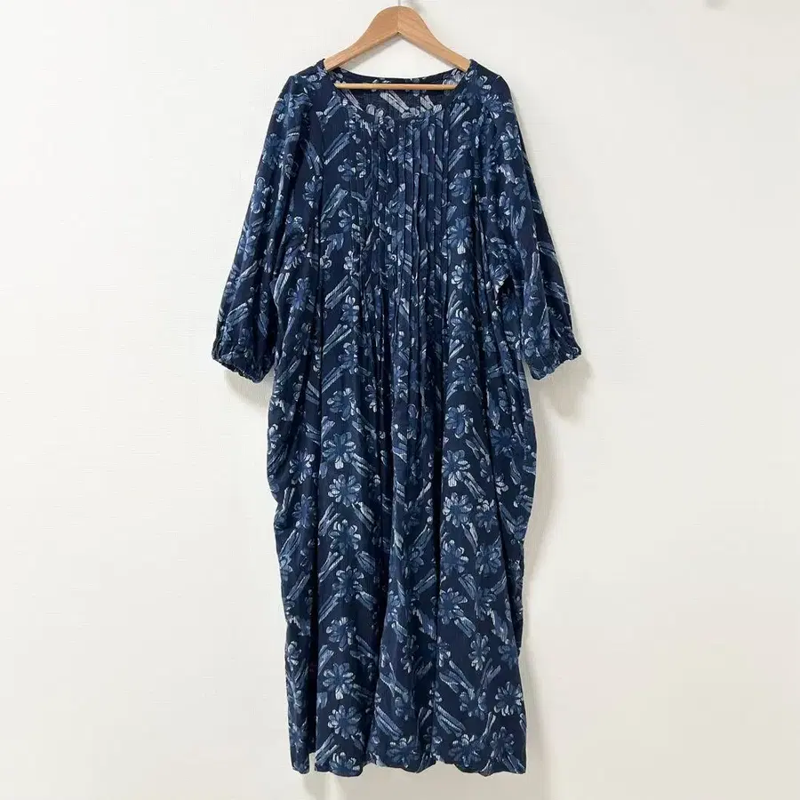 45R 히코리 보자기 프린트 드레스 꽃무늬 인디고