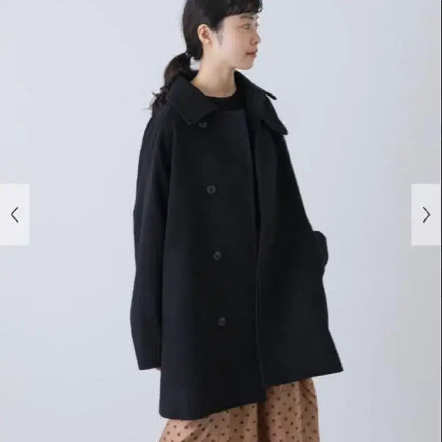 적당한 탄력이 있는 울을 사용한 아우터. 고품질 원단으로 매우 촉감이 좋고, 가볍고 따뜻한 착용감이 특징입니다. 성숙한 스타일에 어울리는 고급스러운 소재감. P코트의 분위기를 살리면서, 버튼은 1열로 하여 세세한 디테일을 채용했습니다. 안감이 부착되어 있어 부드럽게 니트를 겹쳐 입어도 한겨울까지 돌려 입기가 가능합니다. 팬츠 스커트 어느 쪽에도 균형감 있게 맞춰 입으실 수 있습니다. 양사이드에 포켓이 부착되어 있습니다. 턱 스트랩을 잠가 스탠드 칼라로도 즐기실 수 있습니다. 같은 소재로 다른 아이템도 준비되어 있습니다.