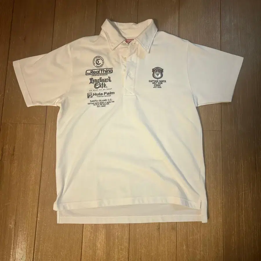 00s C&C 화이트 피케 셔츠 캡틴 산타