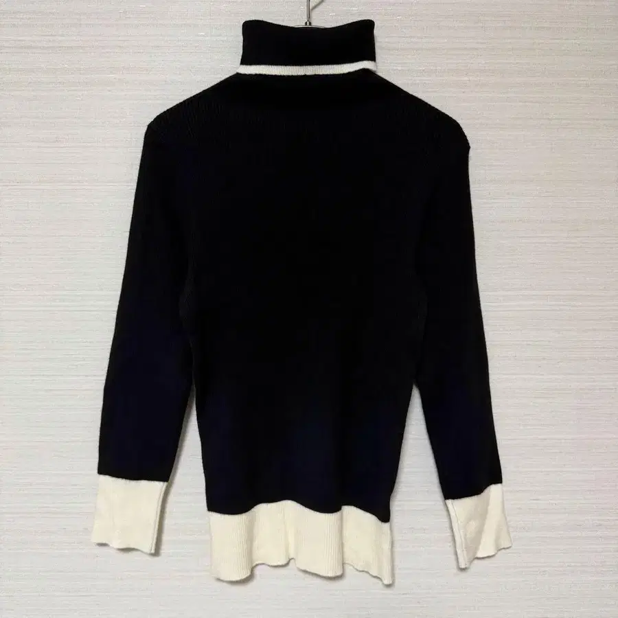 • 울 100% 터틀넥 리브 니트 블랙 L 심플 베이직
