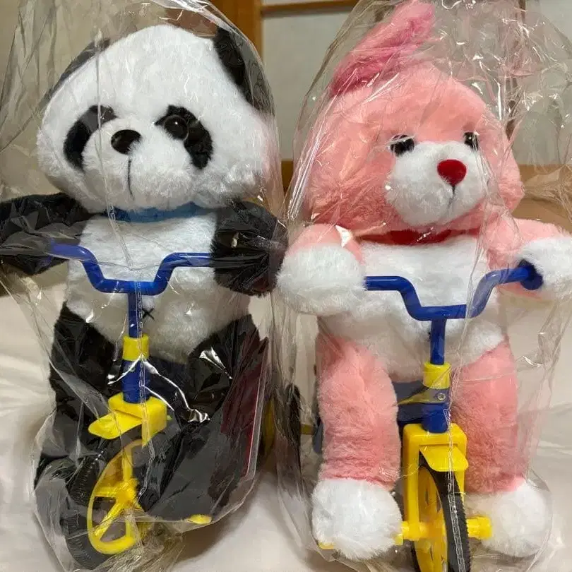 자전거를 타고 가는 인형옷 유원지 출근