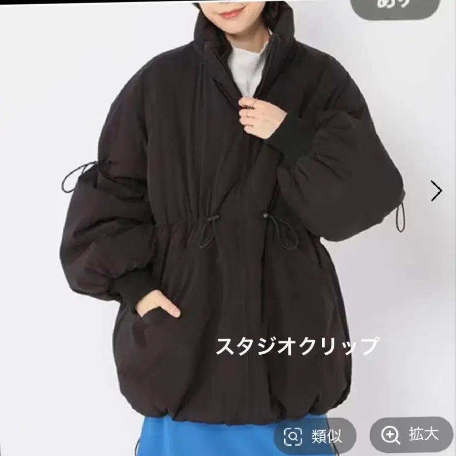 허리와 소매 부분에 드로스트 끈이 있어 원하는 실루엣으로 조절 가능한 것이 디자인 포인트입니다 ♪