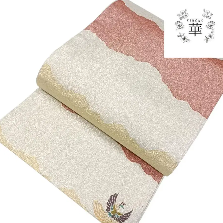 화 후쿠로 오비 엮음 변화 줄무늬 봉황 은 금 빨간색