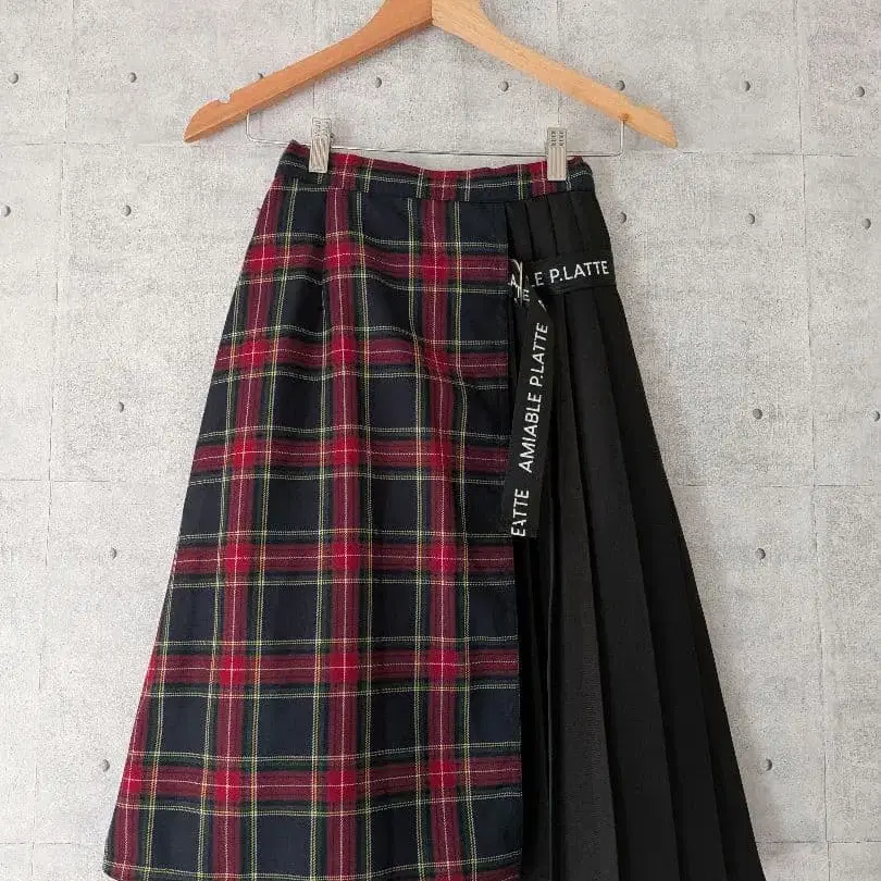 ◎ 플리츠 절개가 포인트인 체크 무늬 스커트.