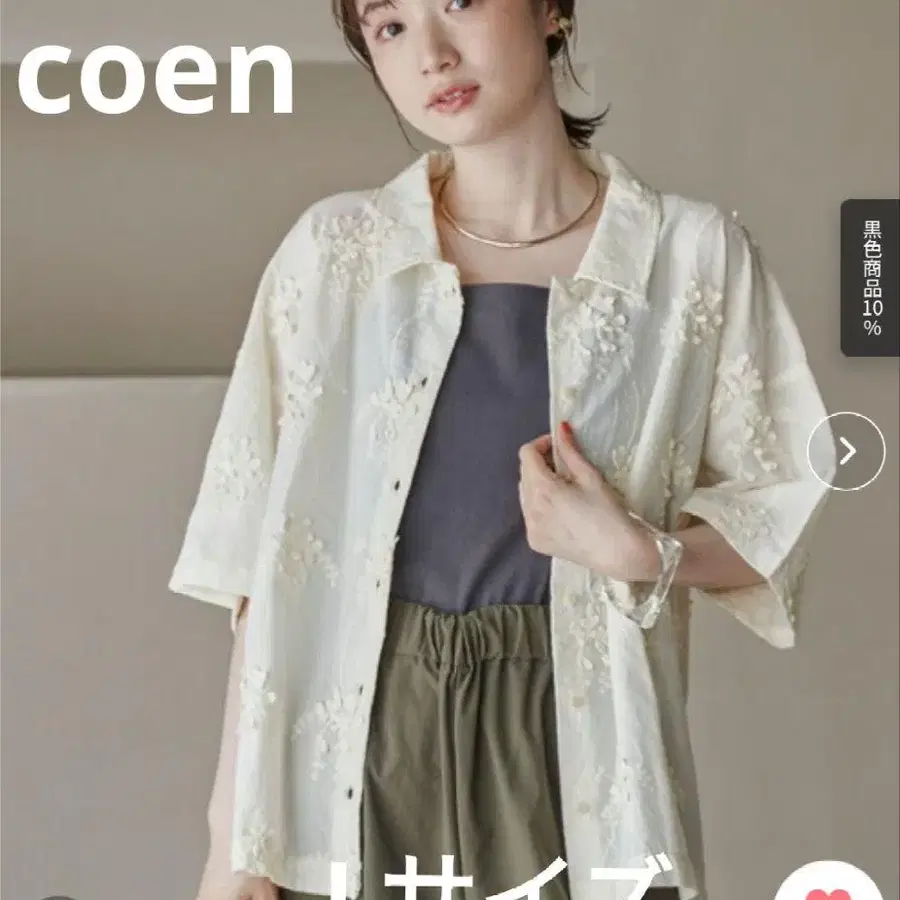 coen 3D 플라워 자수 하프 슬리브 셔츠