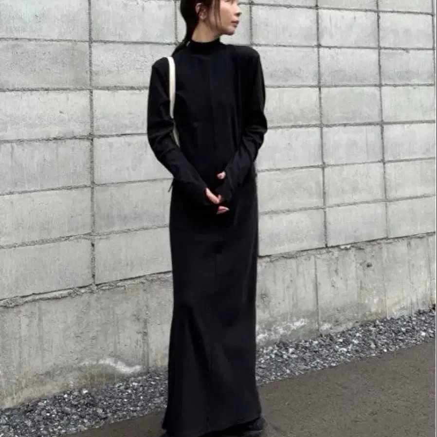 핑거 슬리브 프티 하이 리브 원피스