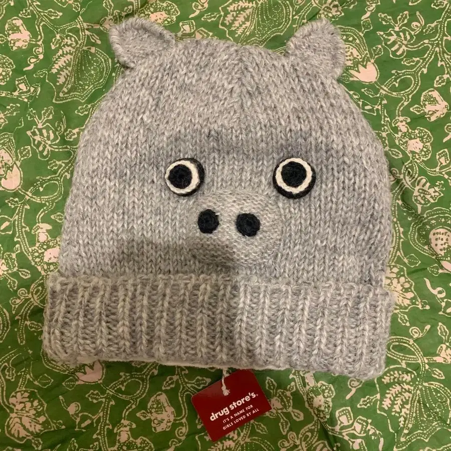 새상품 동물 얼굴 니트 모자 그레이 귀 포함