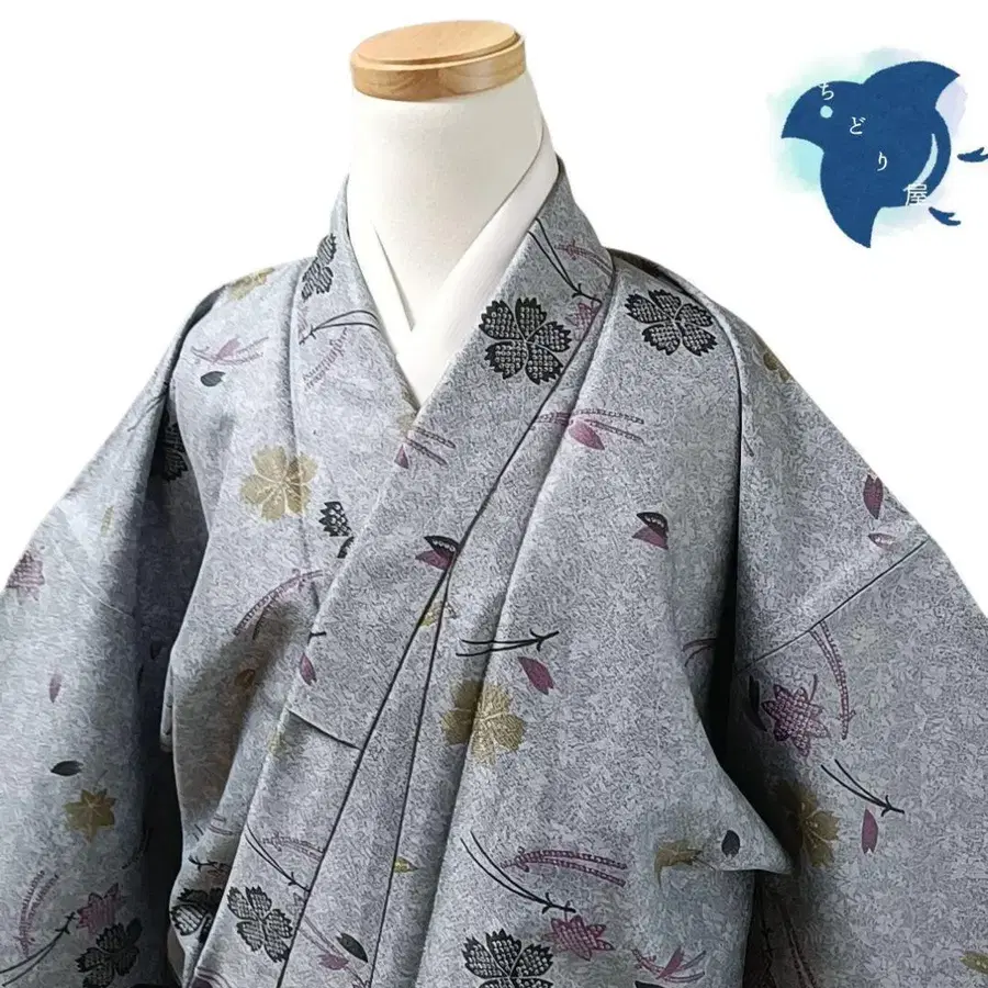 C32 치도리야 기모노 코몬 워셔블 기모노 화학 섬유 꽃 그레이