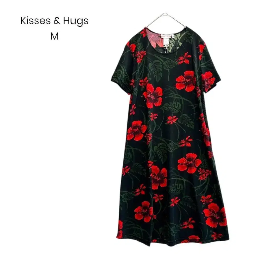 선명한 빨간색 꽃무늬가 눈길을 끄는, 남국 분위기가 물씬 풍기는 원피스.