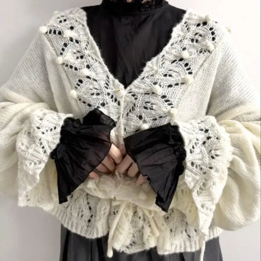 소매와 허리의 리본으로 실루엣을 조절할 수 있는 니트 가디건