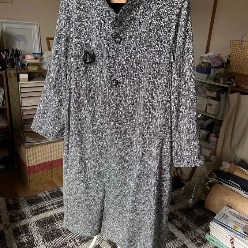 블랙과 화이트 도트 패턴 롱 코트 리버서블