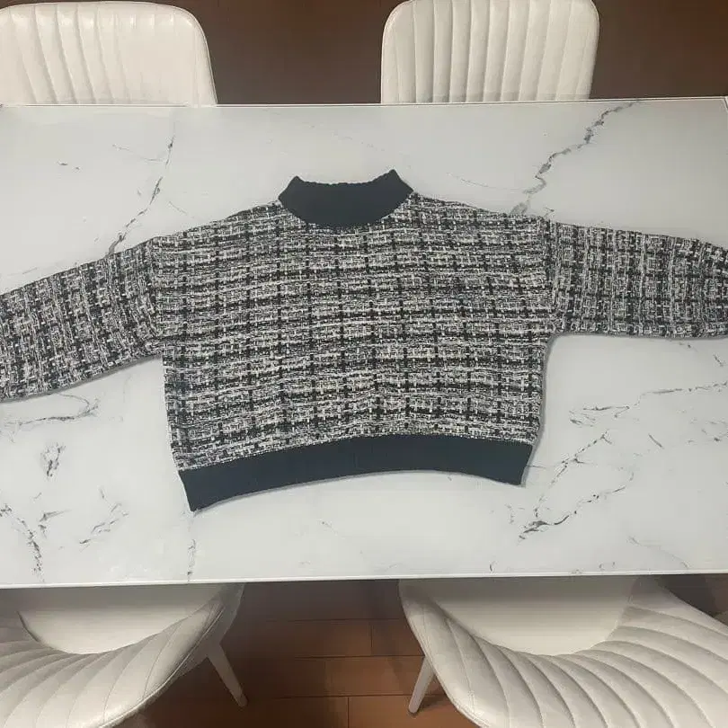 체크 무늬 긴팔 하이넥 스웨터 M 사이즈
