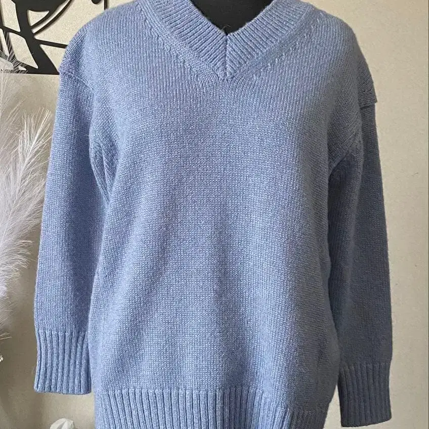 23구 V넥 라메 니트 38 울 x 알파카 혼방 고급 블루