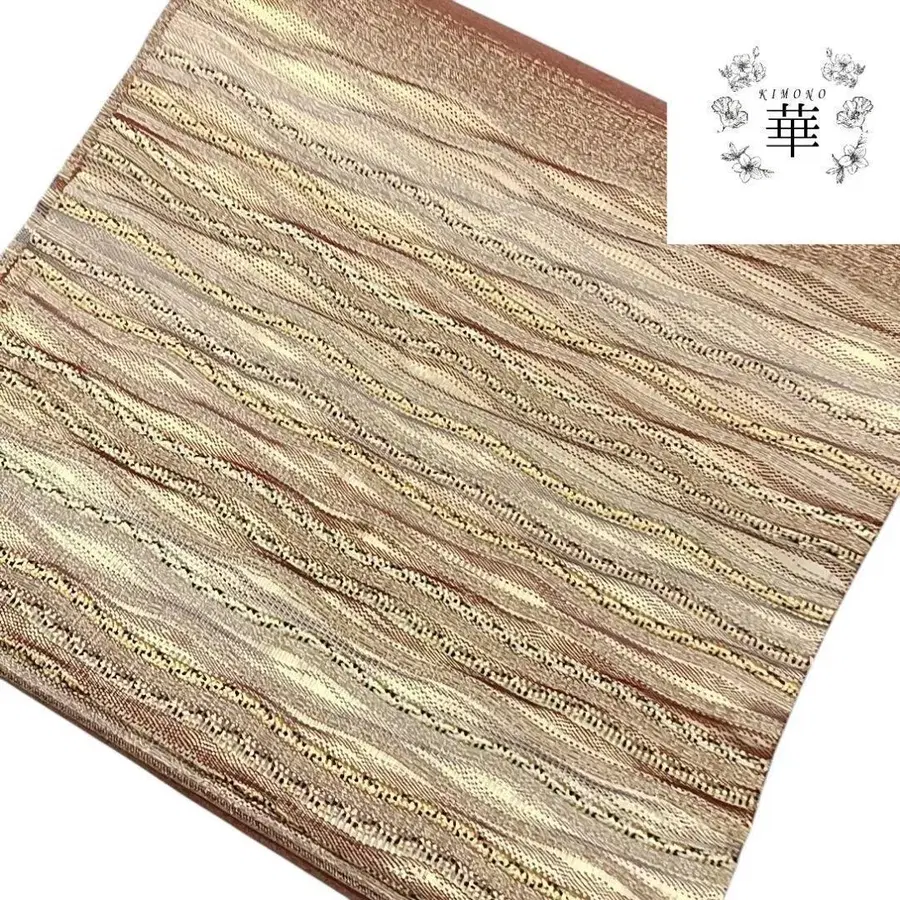 • 후쿠로 오비 쇼소인 문양 당직금 부채 문양 도라지 모란 골드 컬러 포멀