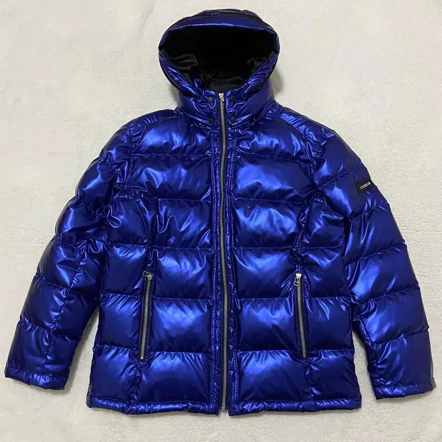 메탈릭 그레이 색상의 다운 자켓 (색감은 블루 계열입니다)