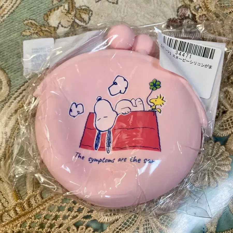 스누피 실리콘 가마구치 동전 지갑 간식 파우치 핑크