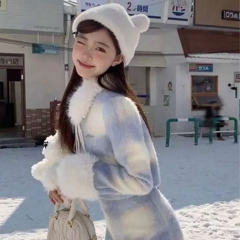 퍼 포함 블루 화이트 하운드투스 체크 셋업