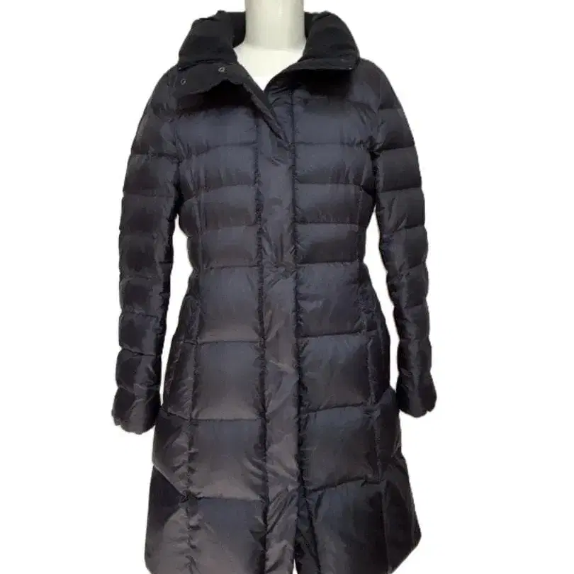 ■ 특징: 여성용 다운 코트. 옷깃을 세우면 따뜻함을 놓치지 않습니다. 색상은 다크 네이비. 가정에서 세탁 가능.