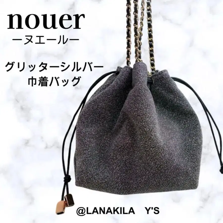 누에르 nouer 복조리 백 라메 실버 글리터 체인