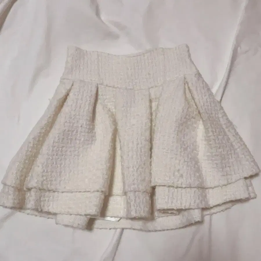 미셸 마카롱 슬림 레그 화이트 트위드 스커트