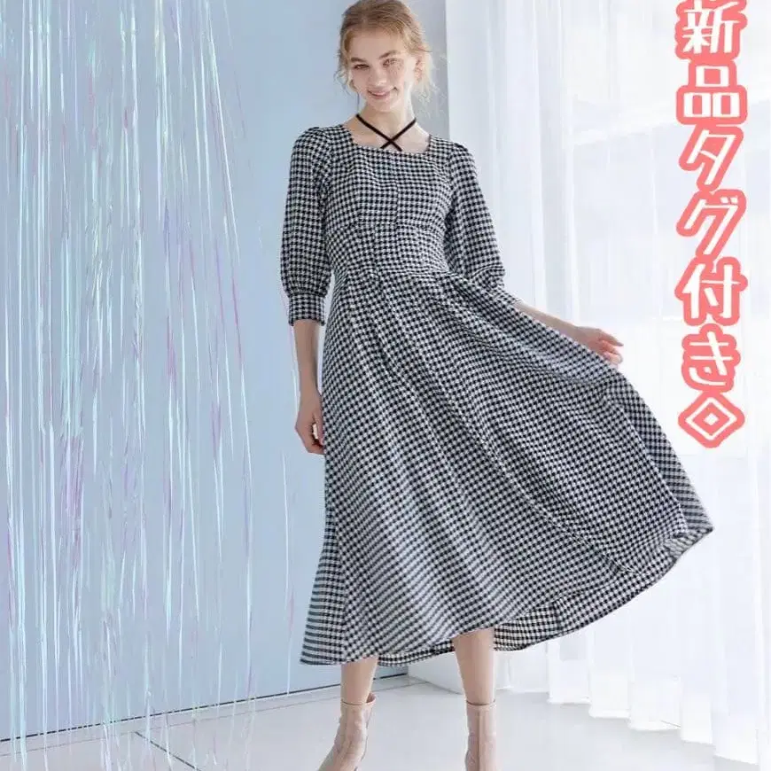 택 포함 새상품 앙데팡당 하운드투스 체크 패턴 넥 디자인 허리 턱 원피스