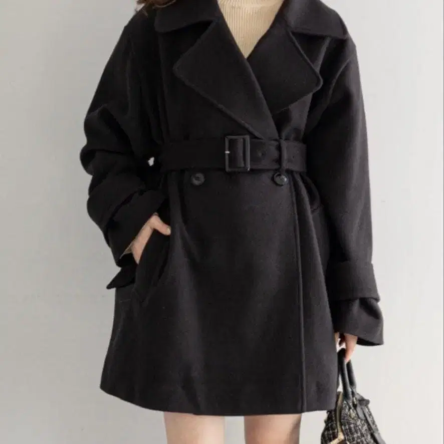 미들 기장 코트 코트 블랙 [Chico] 미들 기장 오버코트 블랙