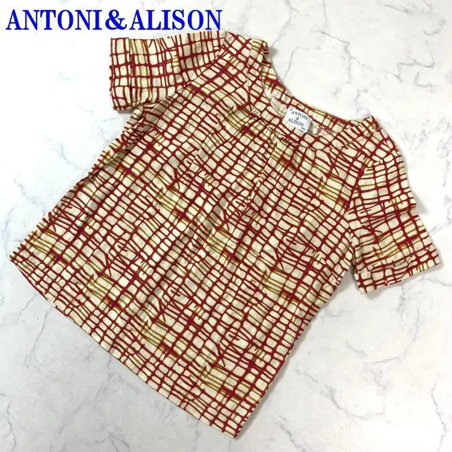안톤 앤 앨리슨 반팔 블라우스 빨간색 베이지 린넨 S C2468