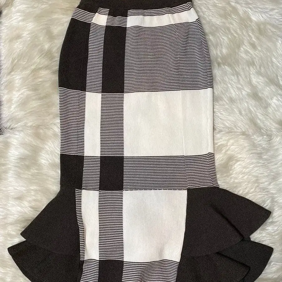 bonheur 블록 체크 스트레치 니트 머메이드 스커트 미사용품
