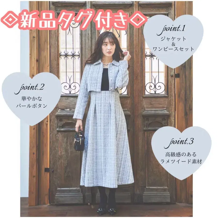 택 포함 새상품 swingle 펄 버튼 트위드 자켓, 원피스 세트