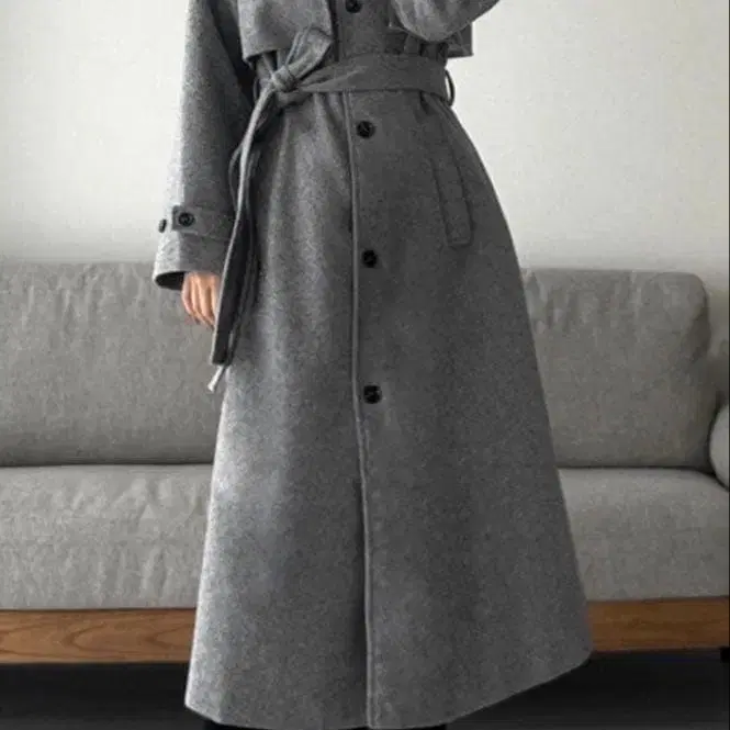 새상품 2way 스텐 칼라 롱 코트 그레이 L