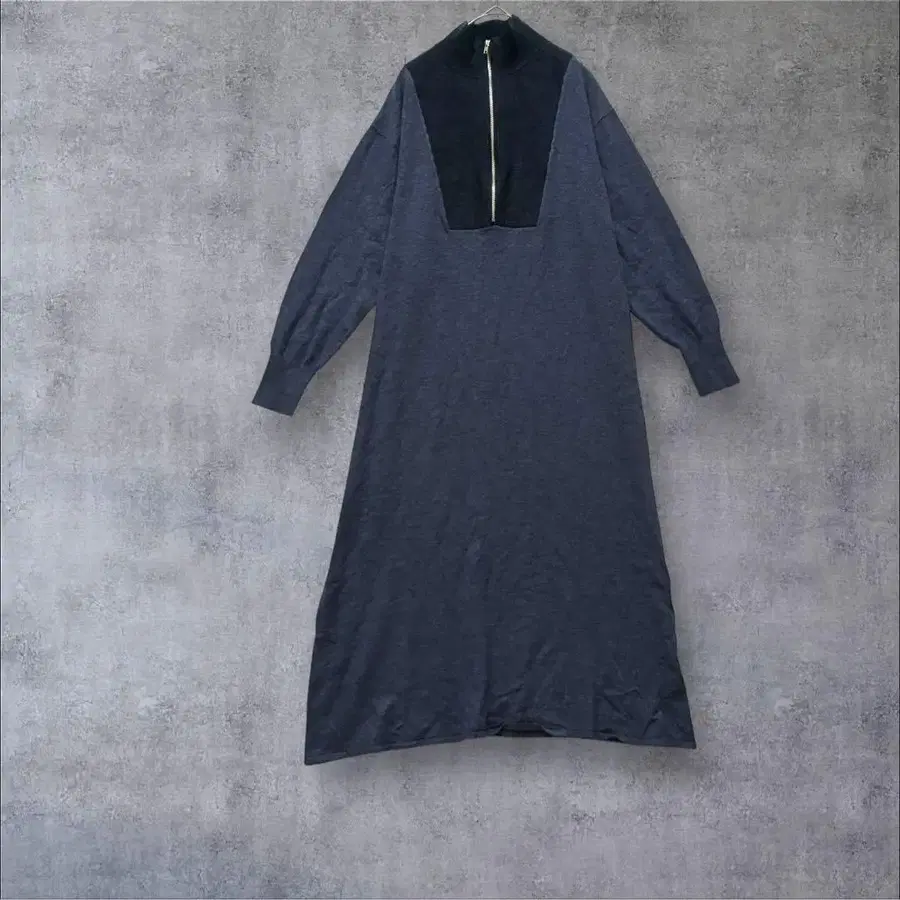 하프 지퍼가 트렌디하며, 세로 라인을 강조하는 실루엣이 고급스러운, 출퇴근이나 외출에 최적인 네이비 니트 원피스입니다 ♪