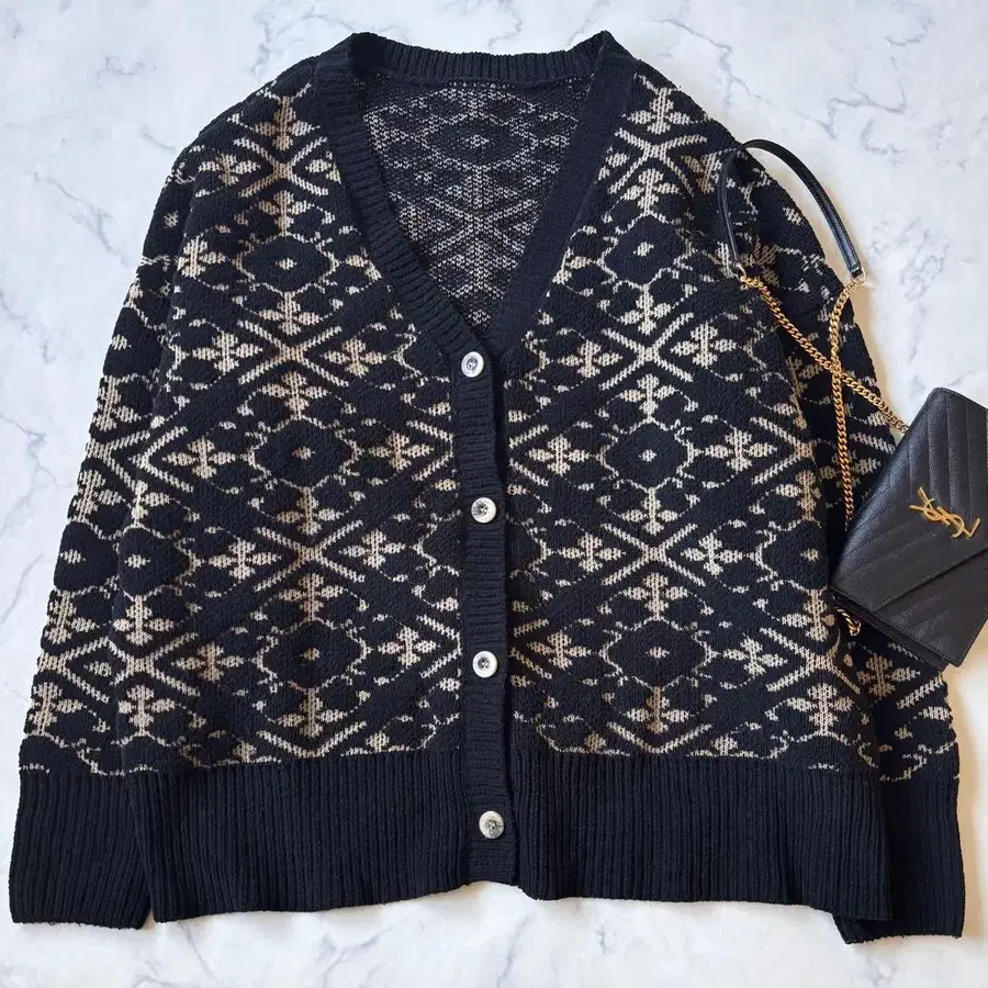 ◆ ANDSEARCH 오버 사이즈 니트 가디건 자카드 올 패턴