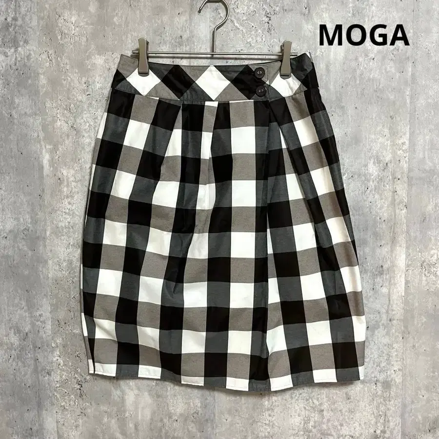 MOGA 체크 타이트 스커트 무릎 기장 고급 심플 허리 버튼