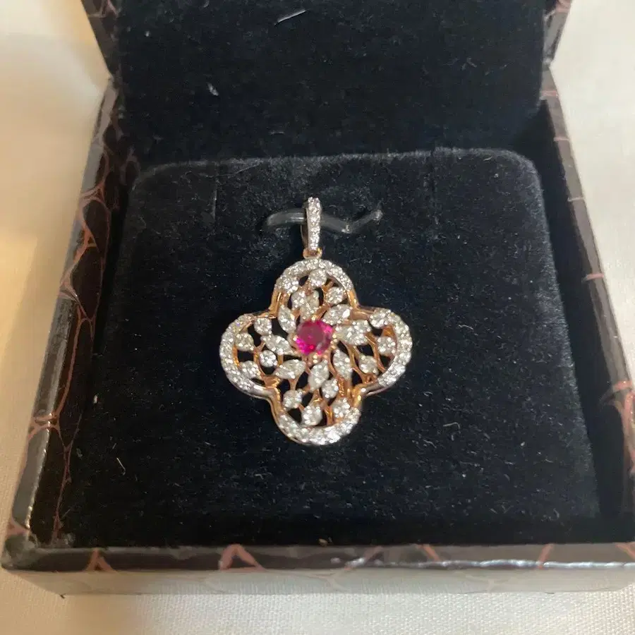 금속제 프레임에 와인 레드 보석이 세트되어 있으며, 고품질 소재가 사용되어 오래갑니다.
