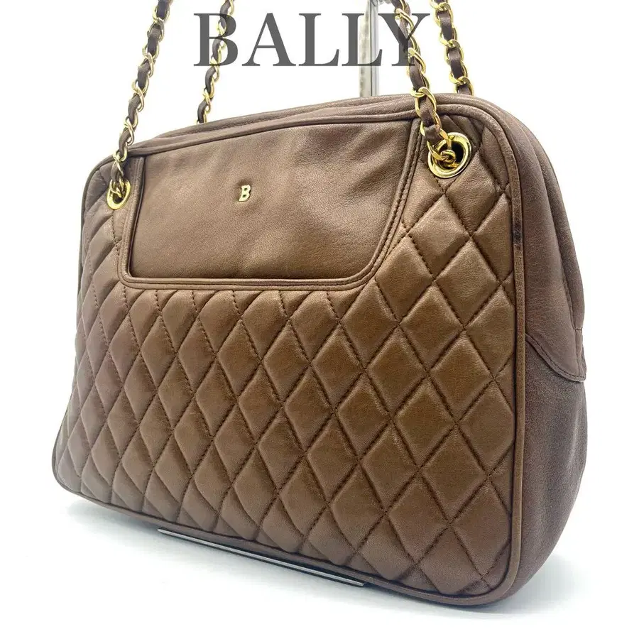 발리 BALLY 숄더백 퀼팅 체인 브라운 B로고
