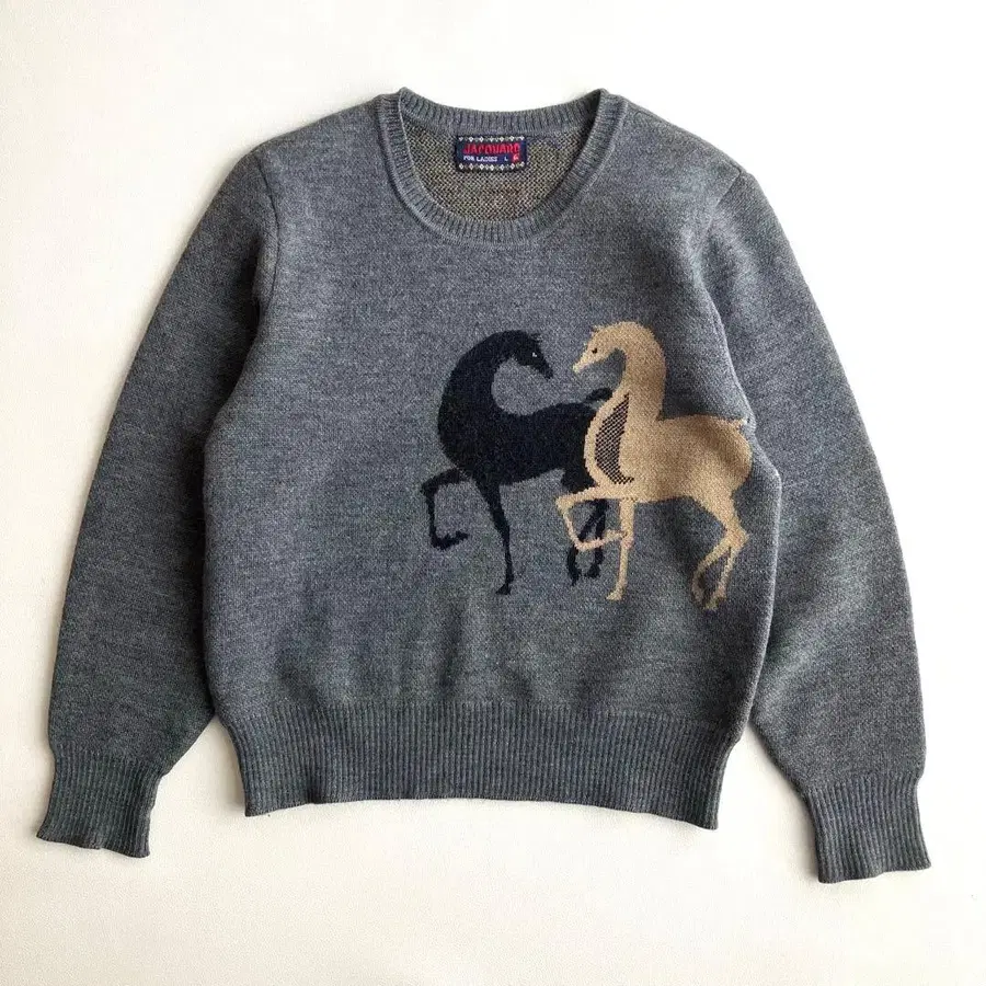 자동 번역되었어요. 원문보기빈티지 느낌의 말 모티브가 눈길을 끄는, 인터샤 편직 울 니트입니다.
