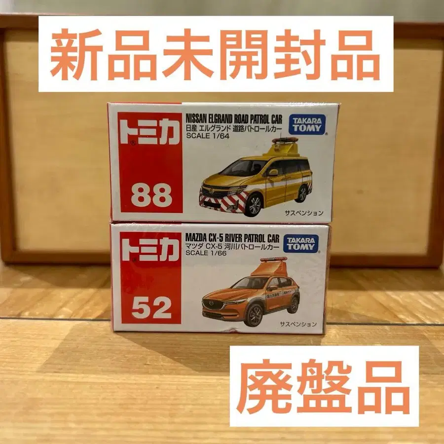 단종된 토미카 닛산 엘르 패트롤 도로 순찰차와 마쓰다 CX-5 하천 순찰차 2대 세트입니다.