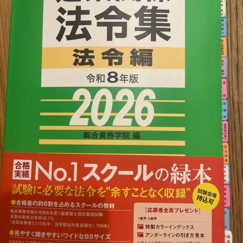 1급 건축사 법령집 레이와 8년판(B5판) 선긋기 완료 인덱스 부착 완료