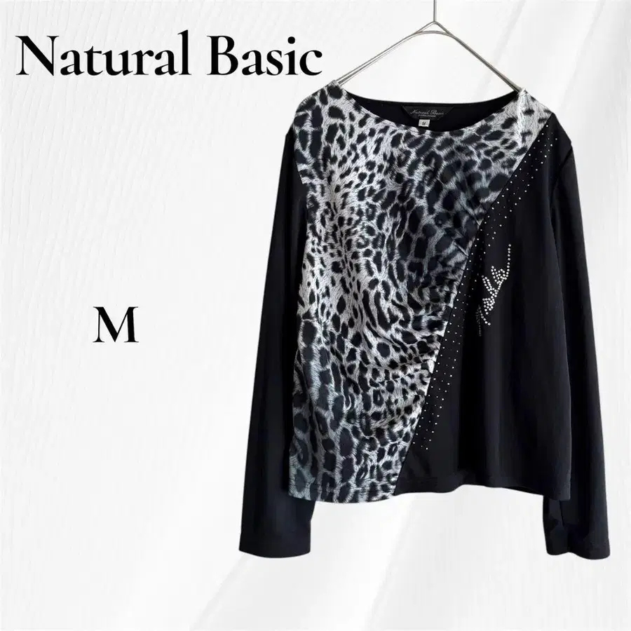 레오파드 무늬와 비쥬가 특징인 캐주얼한 긴팔 티셔츠.
