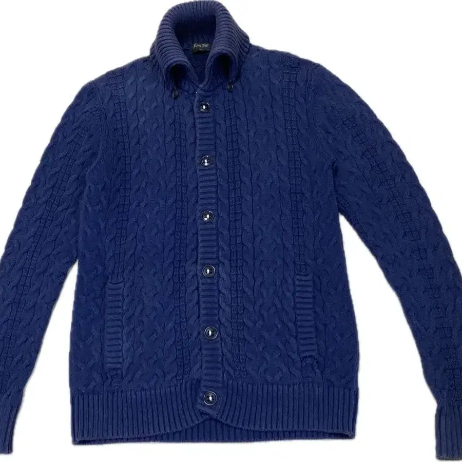 ■ 돈키 카라, 앞 6버튼 전개, 카라 소매 밑단 리브 짜임, 소매와 몸통은 총 케이블 짜임, 사이드 포켓이 달린 가디건입니다. 탄탄한 고급 코튼 니트 소재로 만들어졌습니다.