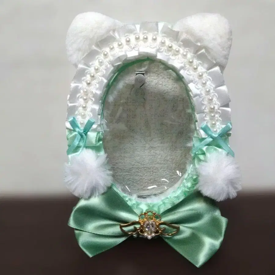 고양이 귀 장식 봉제 인형 파우치 봉제 인형 케이스 그린
