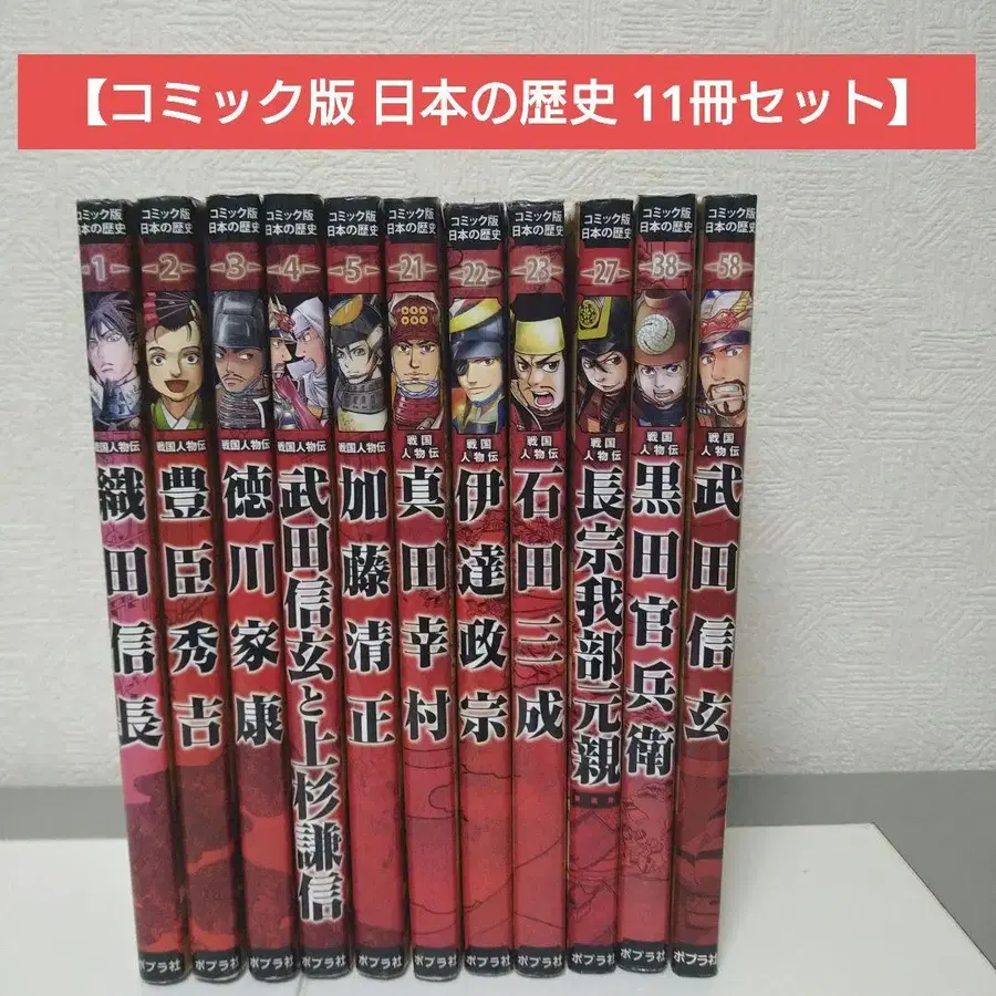 봐주셔서 감사합니다. 포플러사의 코믹판 일본의 역사 11권 세트입니다. 1. 오다 노부나가 2. 도요토미 히데요시 3. 도쿠가와 이에야스 4. 다케다 신겐과 우에스기 겐신 5. 가토 기요마사 21. 사나다 유키무라 22. 다테 마사무네 23. 이시다 미쓰나리 27. 조소카베 모토치카 38. 구로다 간베에 58. 다케다 신겐 모두 커버 포함입니다. ※ 낱개 판매는 하지 않습니다. ※ 기본 할인은 하지 않지만, 요청하실 경우 댓글이 아닌 가격 인하 요청으로 부탁드립니다. 상태는 사진을 참조해 주세요. 읽는 데 지장이 없는 도서입니다. 연수가 경과한 도서에는 전반적으로 야케(햇볕에 그을림)나 얼룩이 있거나, 장정이 노후화(표지나 페이지 연결 부분의 풀이 떨어지기 쉬운 등)되거나, 사용감이 보일 수 있습니다. ※ 눈에 띄지 않는 사소한 데미지는 명기하지 않았을 수 있다는 점을 이해하신 후 검토해 주시기 바랍니다. ※ 알코올 소독 후, 방수 비닐봉지로 발송 예정입니다. ※ 라쿠라쿠 메루카리 택배 또는 유유 메루카리 택배는 변경될 수 있습니다.