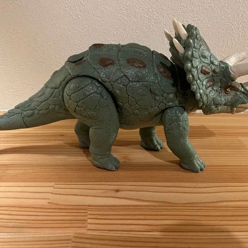 [ 내용 ] 등 뒤의 스위치를 앞뒤로 움직이면 격렬한 배틀 액션을 즐길 수 있는 트리케라톱스 피규어입니다. 머리의 가시가 튀어나와 배틀 모드를 즐길 수 있습니다. 피규어와 연동되는 무료 앱 [ 쥬라기 월드 플레이 ]에 대응하며, DNA 코드를 스마트폰으로 스캔하여 공룡을 컬렉션할 수 있습니다.