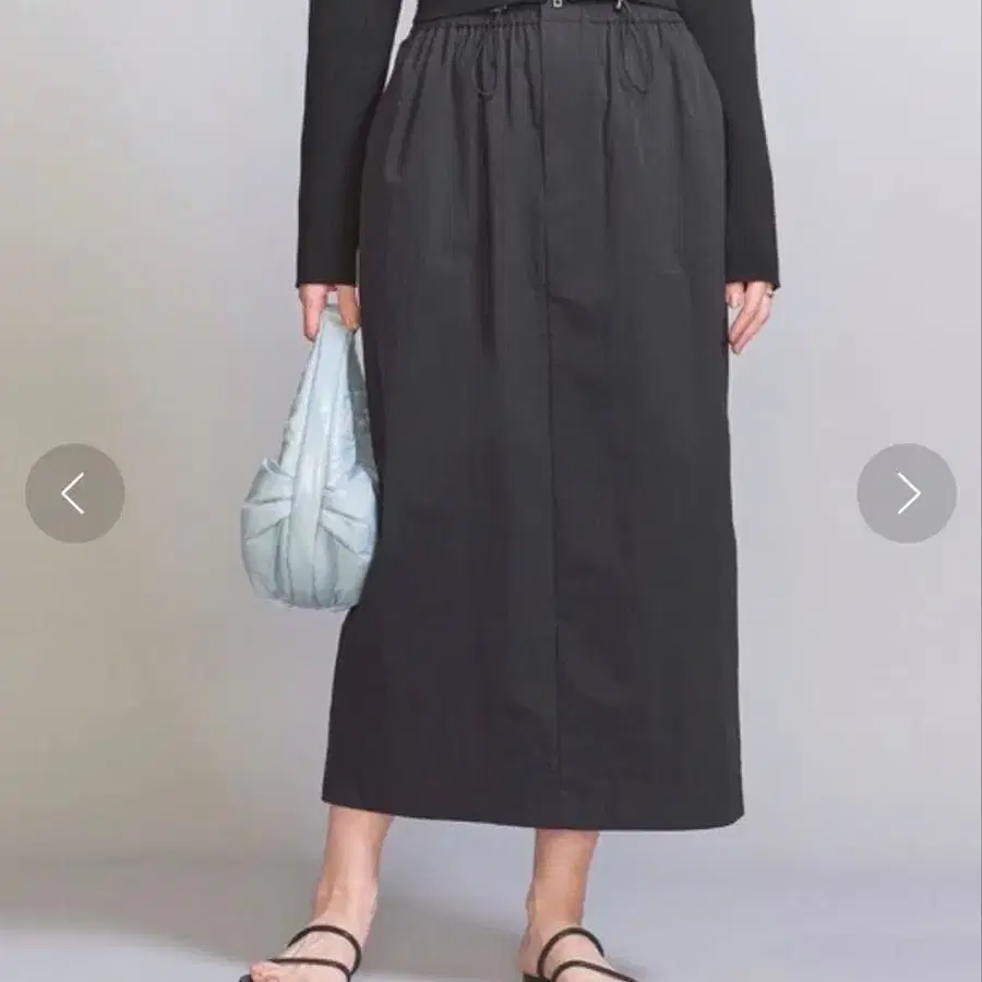 트렌디한 나일론 팬츠에서 영감을 얻은 롱 스커트.