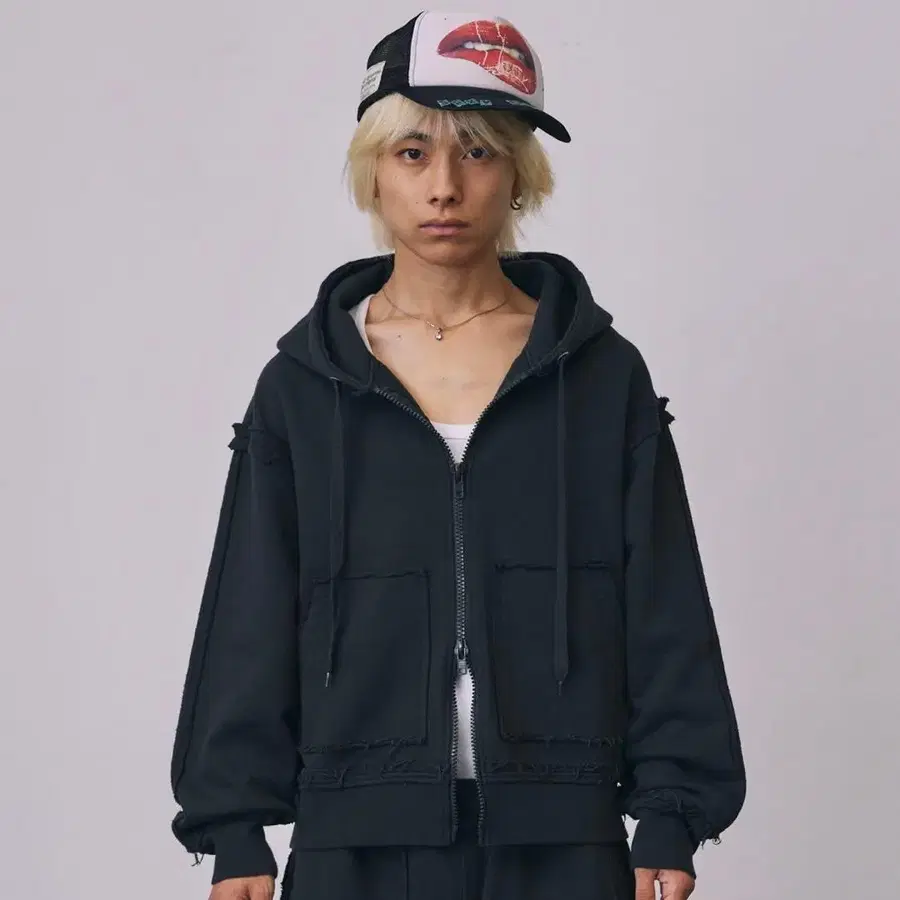 a2o 컷오프 후드 맨투맨 블랙 M 사이즈